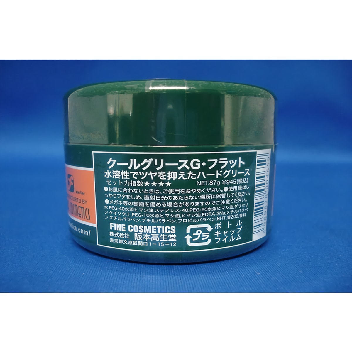 グリース界の定番である「クールグリースG」は扱いやすい粘度やセット力、ツヤ感が売りのスタイリング剤です。グリースGの出番は多岐にわたりますが「さらにTOPに合わせ多彩なバリエーションをこなしたい」という声にお答えしたのが今回登場した「クールグリースGフラット」です。フラット(♭)は音楽用語で「半音下げる」という意味で、文字通りややツヤを抑え、フォーマルなシュチュエーションにも最適な一品です。