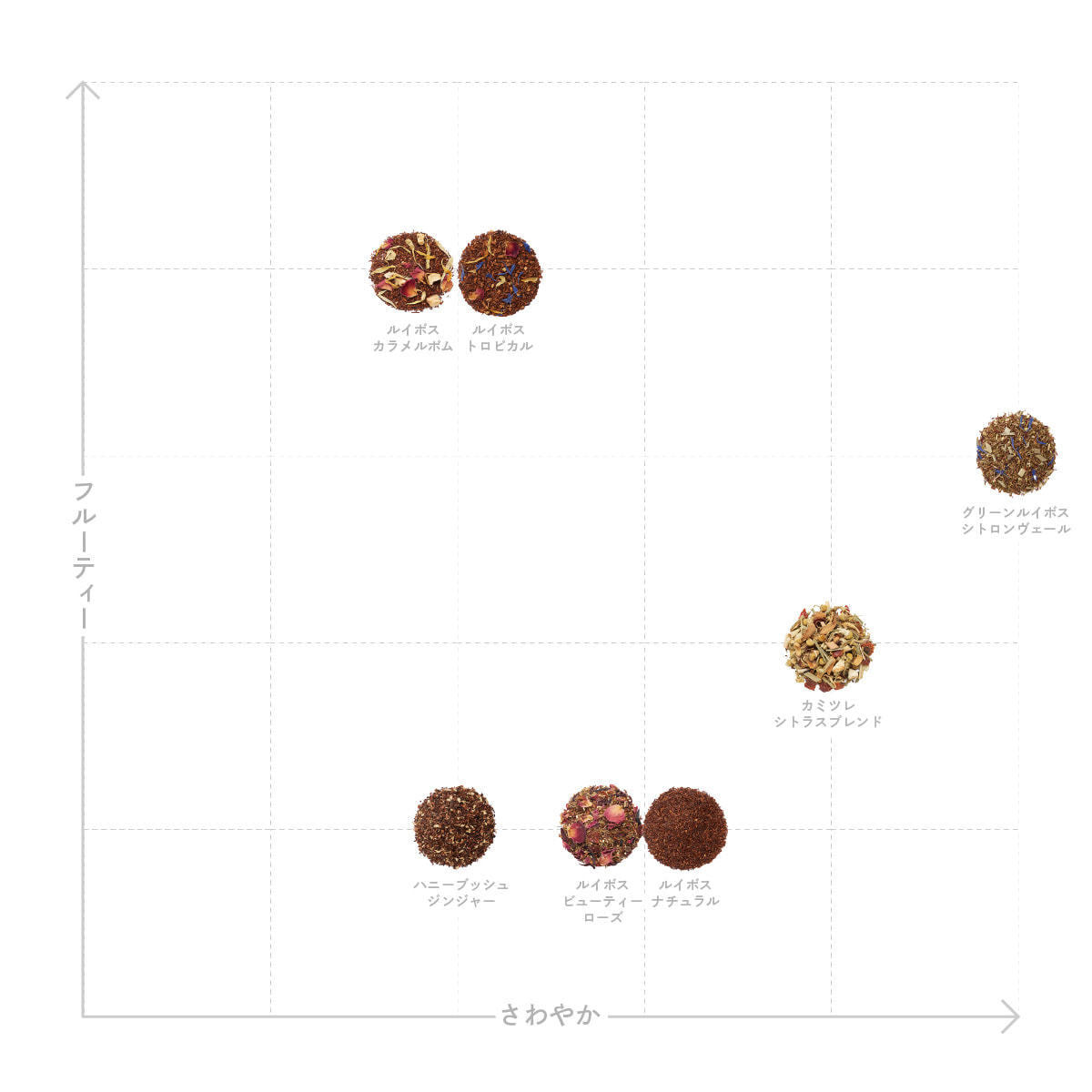 カモミール【クロアチア産】、有機ローズヒップ、レモングラス、オレンジピール、オレンジフラワー、有機スペアミント、有機ハイビスカス、香料
