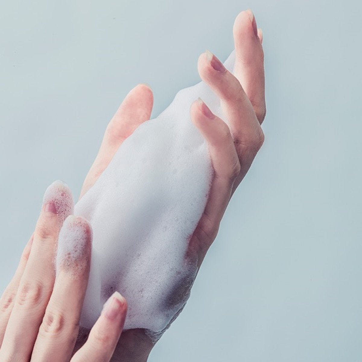 清潔にしたい部分を水またはぬるま湯でぬらしてから、適量を手にとってよく泡立て、指の腹を使って前から後ろへ優しく洗ったあと、よく洗い流してください。