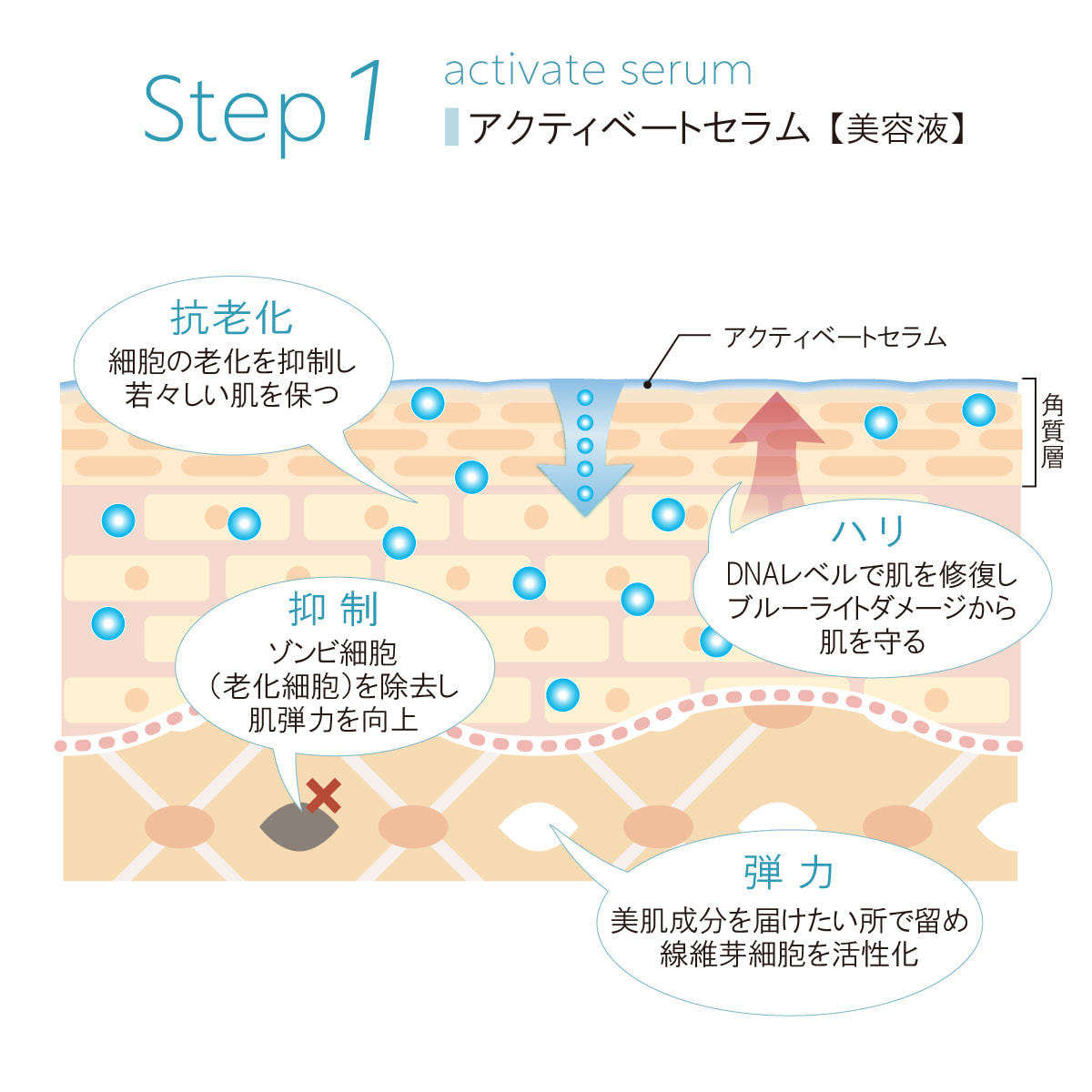 Step1 アクティベートセラム→Step2ディープエモーションオイル→Step3SPブーストエフェクト