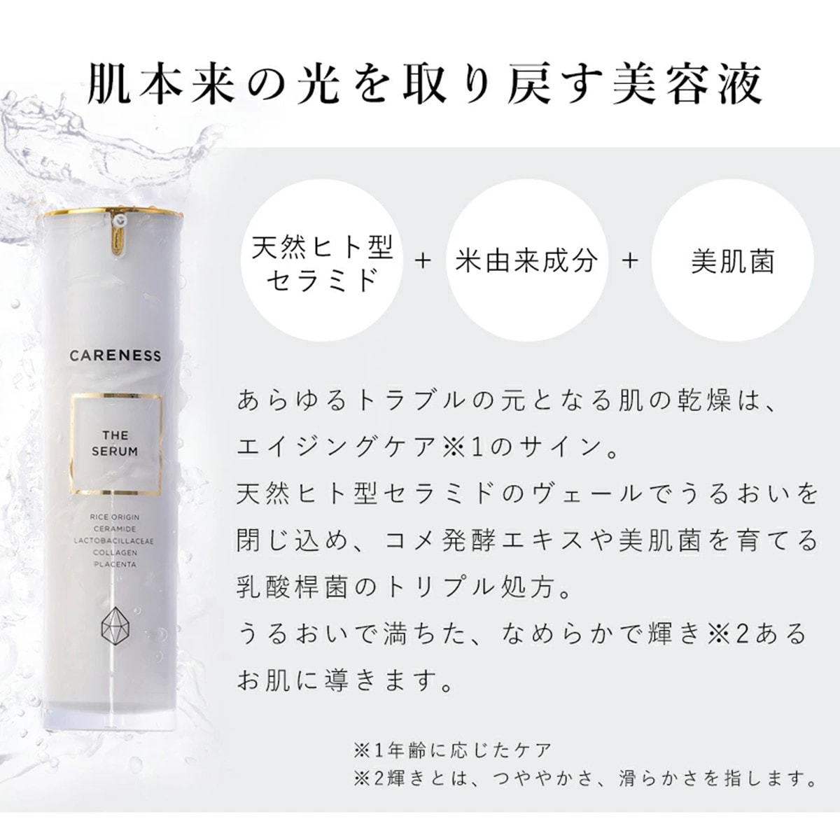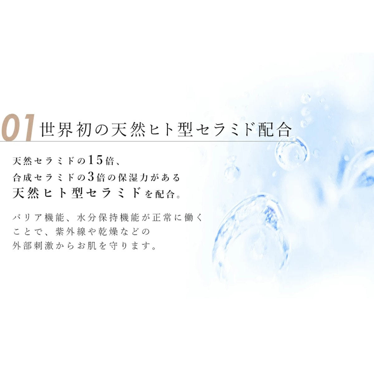 人型天然セラミドのヴェールでうるおいを閉じ込め、コメ発酵エキスや美肌菌を育てる乳酸桿菌のトリプル処方。