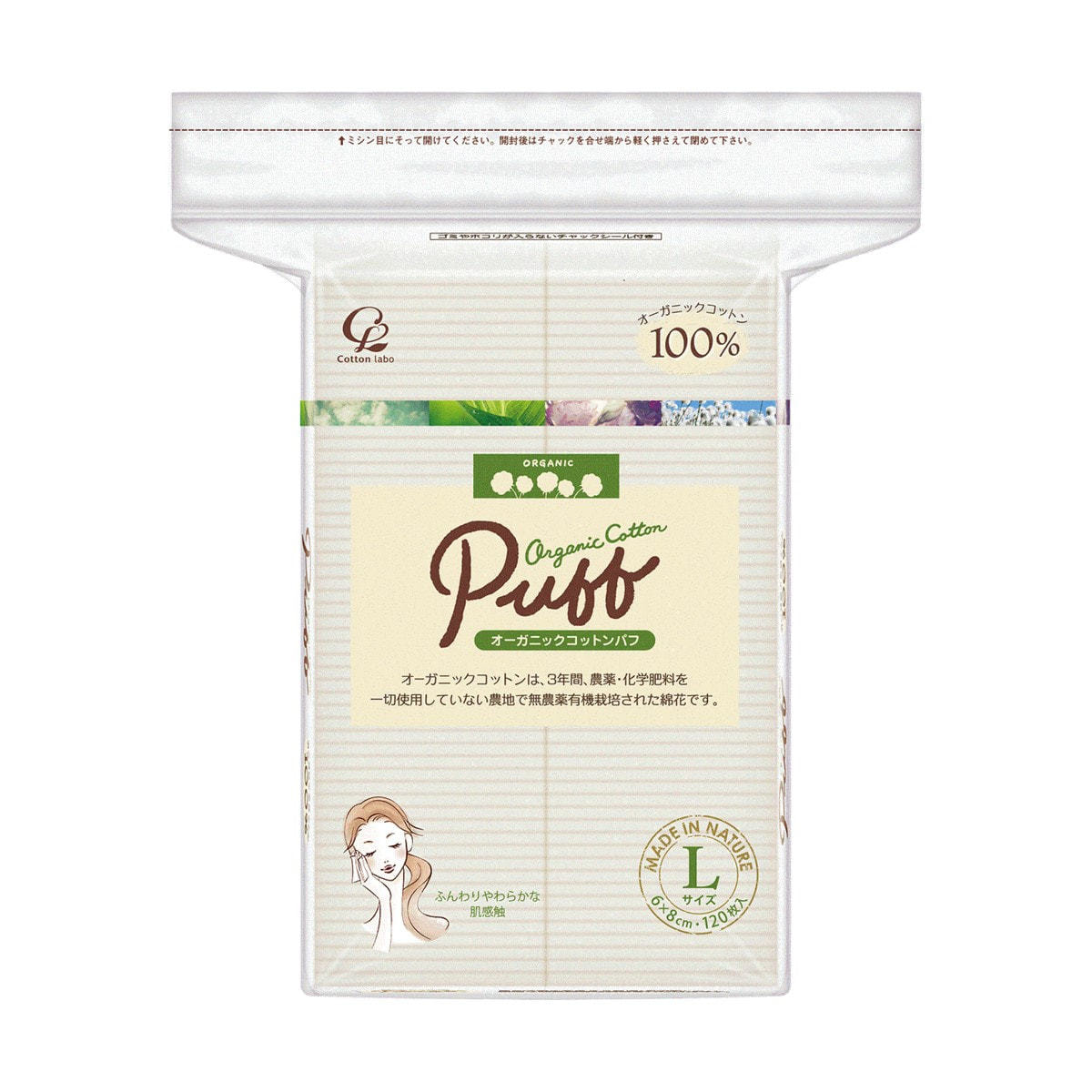 商品番号:0000000000025432 商品コード:TZ-0465N 商品名:オーガニックコットンパフ Lサイズ 120枚 お届け目安:2025-11-01
