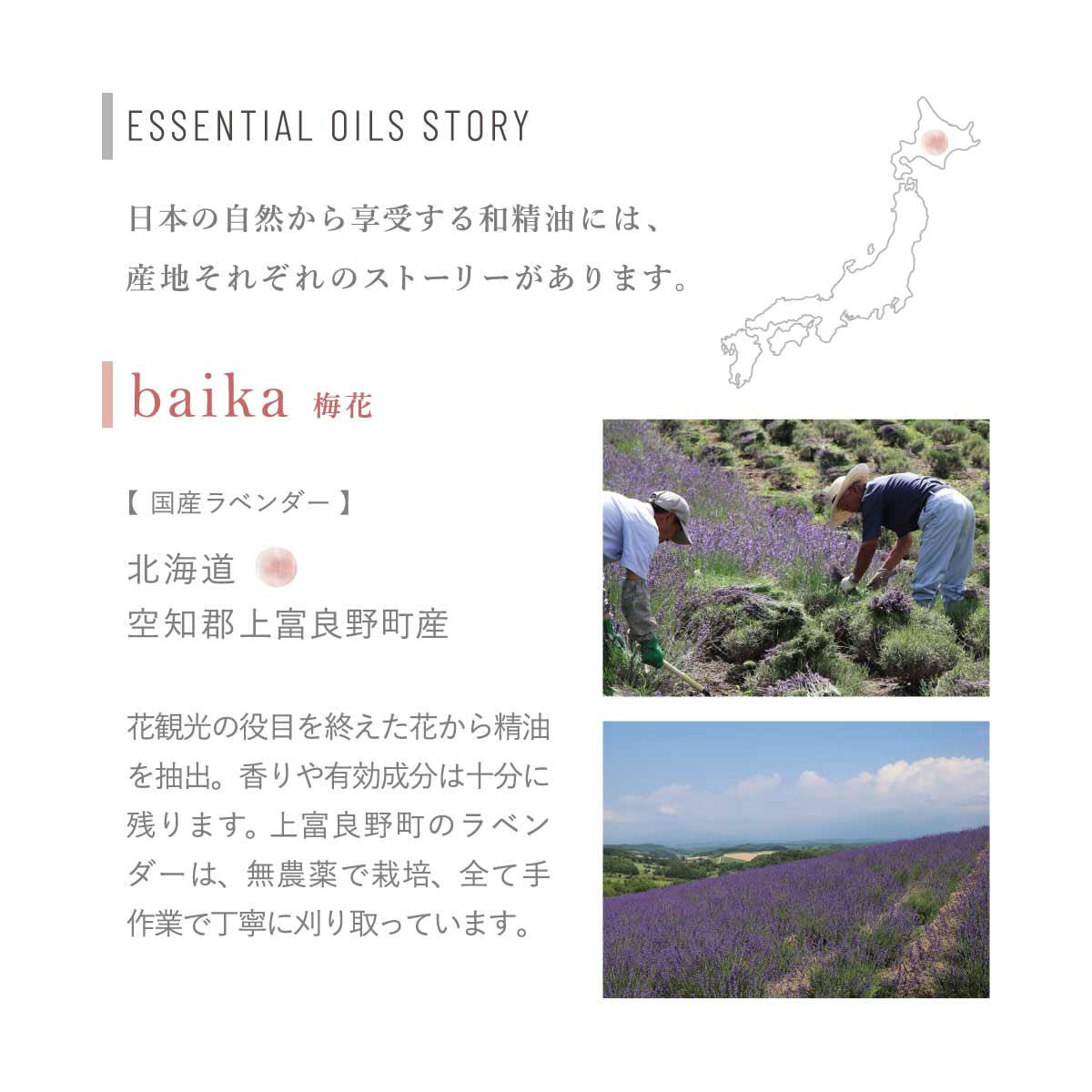 ・天然香料(精油)のみの香り。