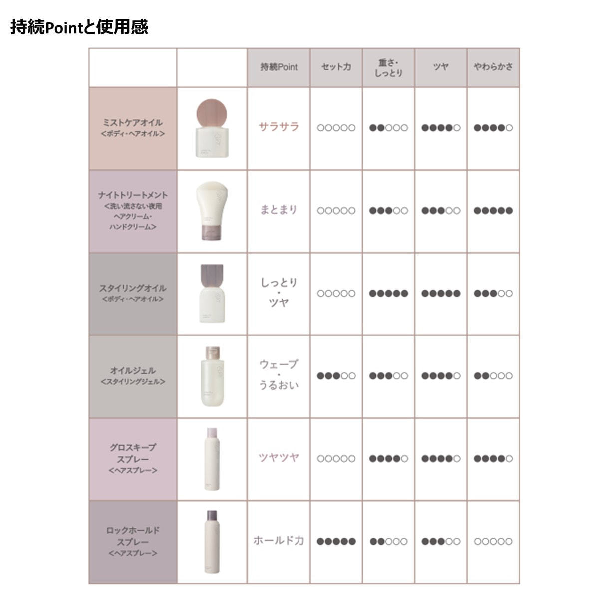 オイルのような感覚で使える、新感覚のスタイリングジェル。 美容液成分※1・水分コントロール成分※2配合で、 毛先までうるおうツヤを与えながらスタイリングします。