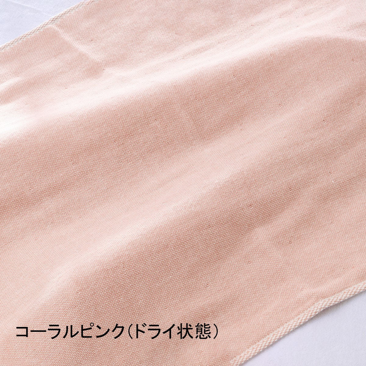 一般的なカラータオルはタオルとして織った後に、さらしと染色を行いますが、先さらし先染めは、コットンが本来持っている特性を引き出し、後染めと比較してやわらかな風合いになります。