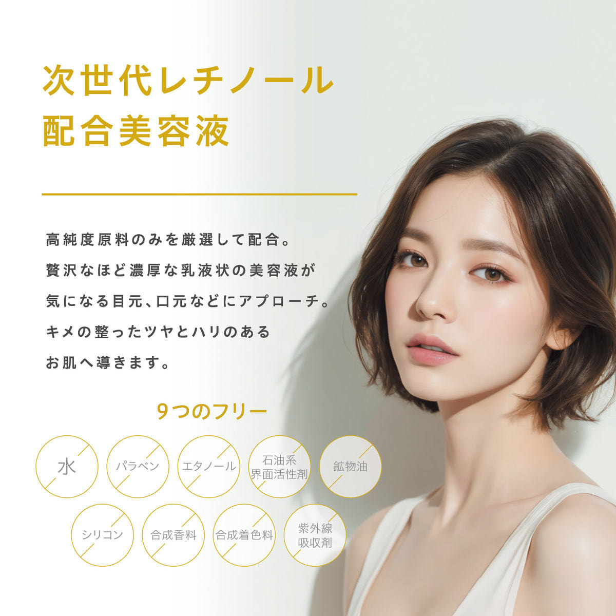 「プラセンタ発酵液」をベースに次世代レチノールを高配合したプレミアムなエイジングケア美容液。