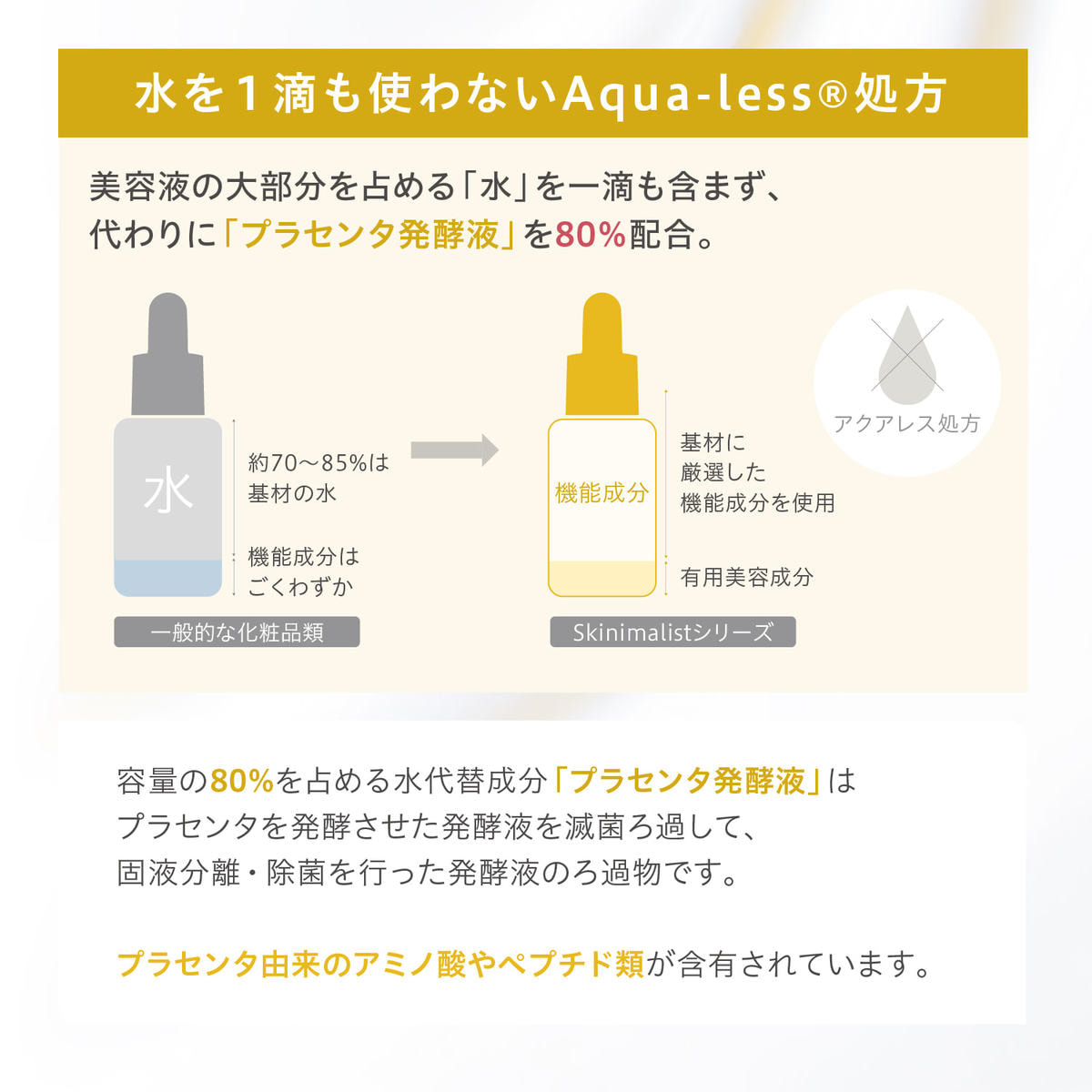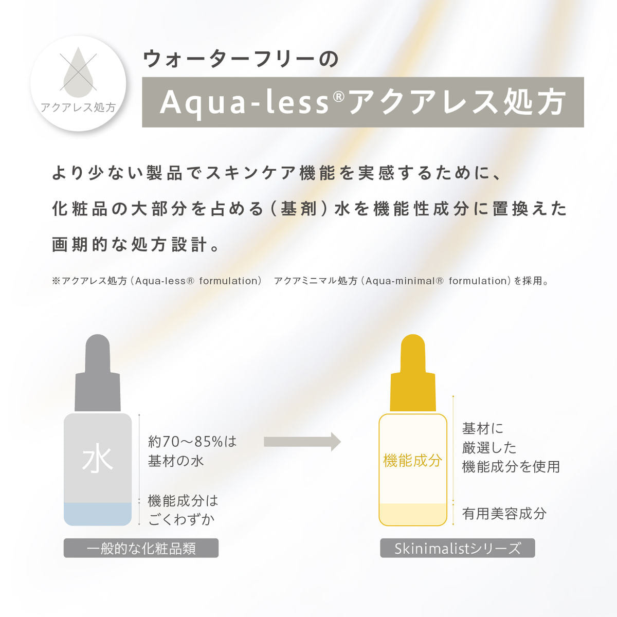 世界的に注目が集まるSkinimalism*( スキニマリズム)実現のために最新の美容成分を厳選し、新処方である“水を一滴も含まない”Aqua-less®(アクアレス)処方を採用。