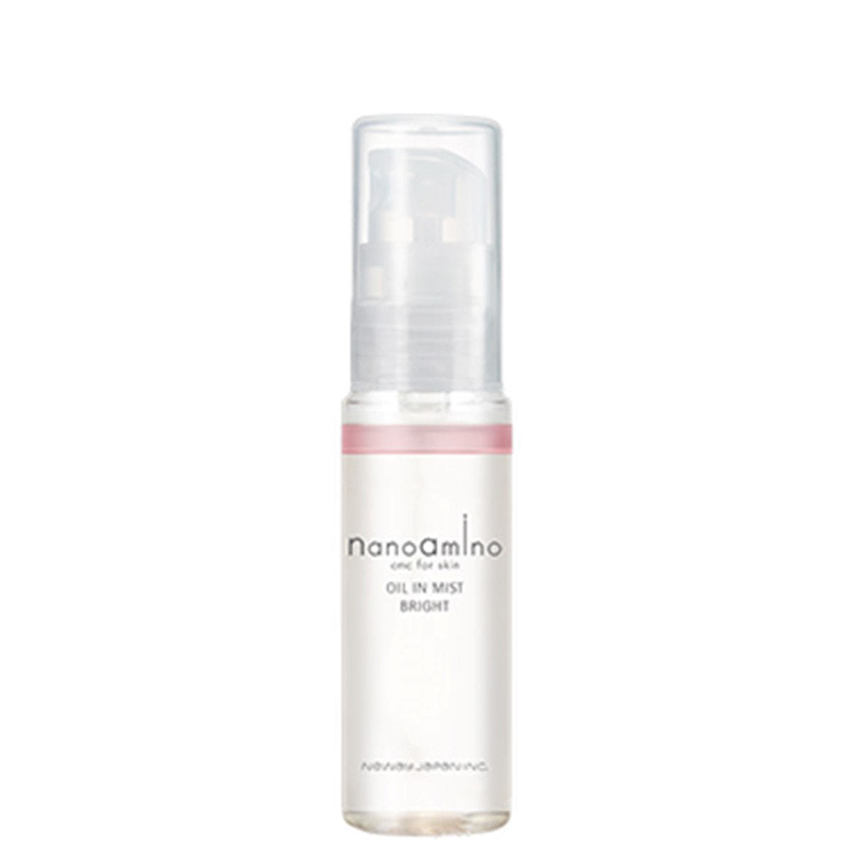 ナノアミノ オイルイン ミスト ブライトは、美容オイルと化粧水のよさを1本にした、みずみずしい使用感の2層式オイルミスト。