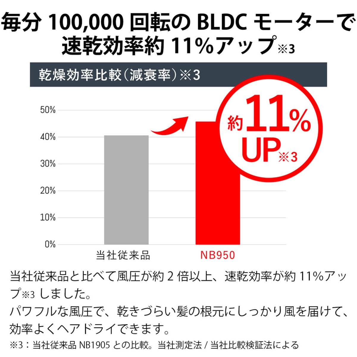 ■毎分100,000回転のBLDCモーター採用で速乾効率約11%アップ※3