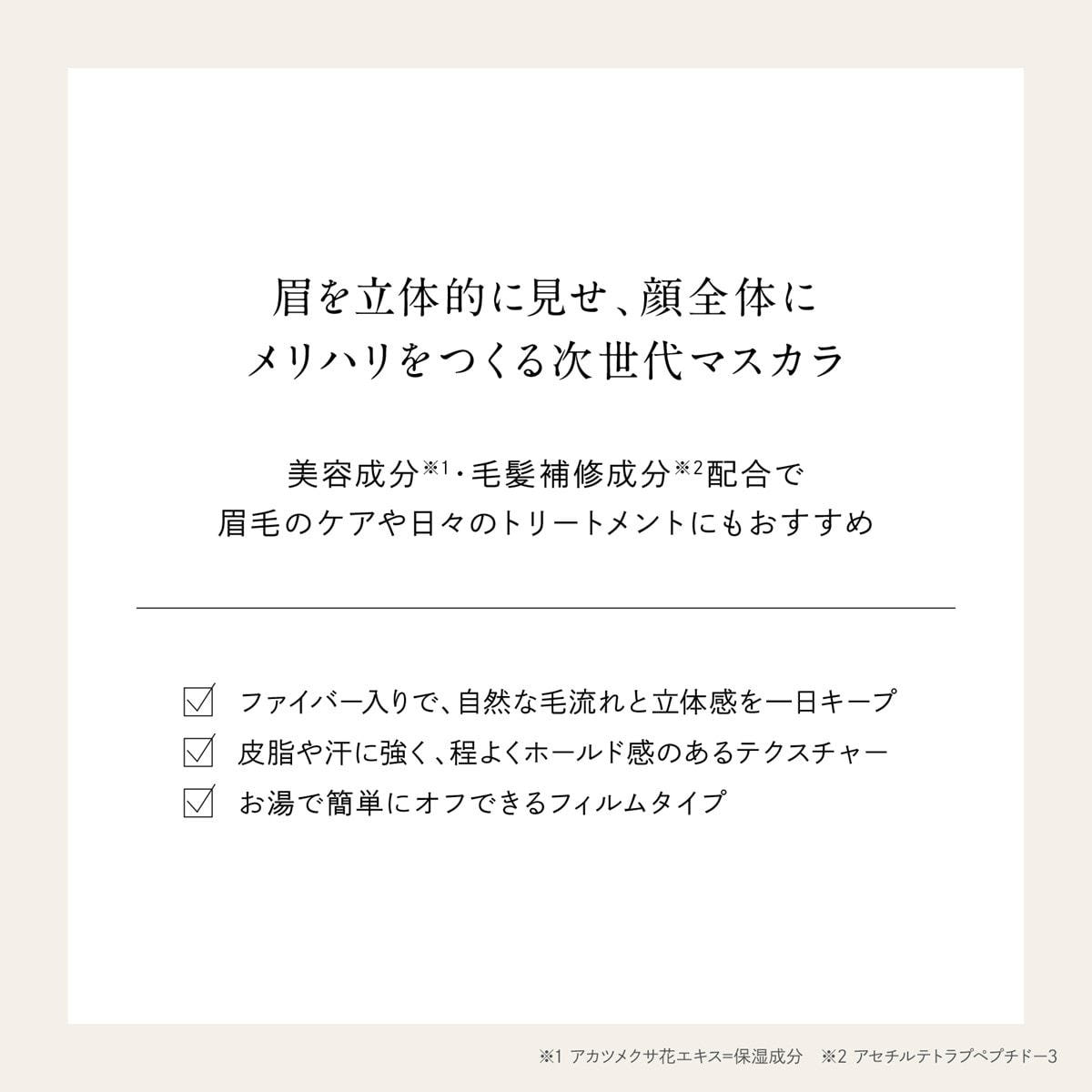 ファイバーをたっぷり含んだリッチなテクスチャーで自然なボリュームアップがかなう眉用クリアマスカラ。
