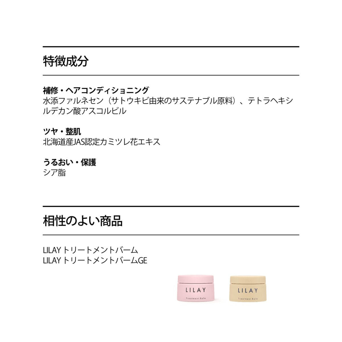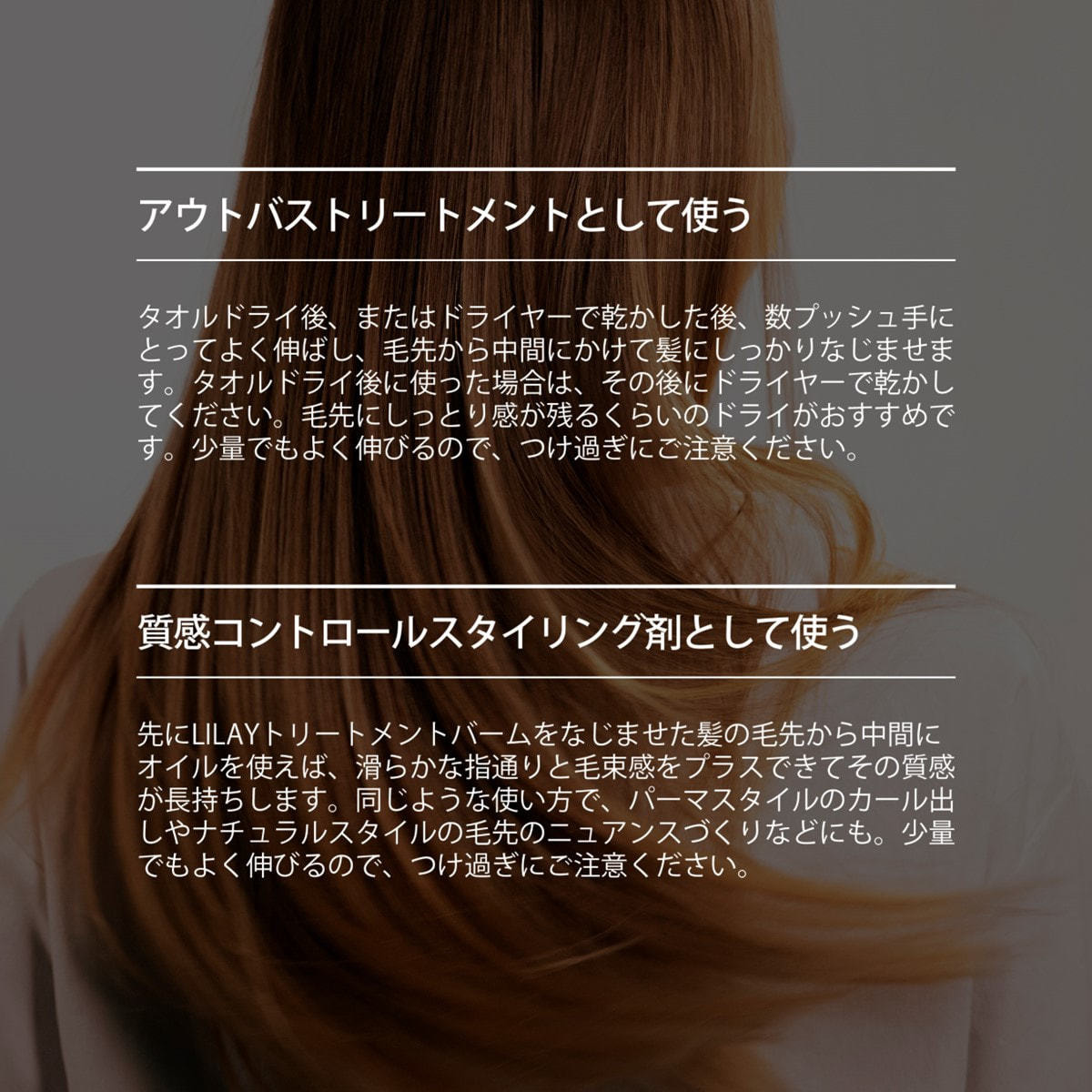 そのまま使うのはもちろん、LILAYトリートメントバームで整えたヘアに重ね付けして指通りやまとまり、