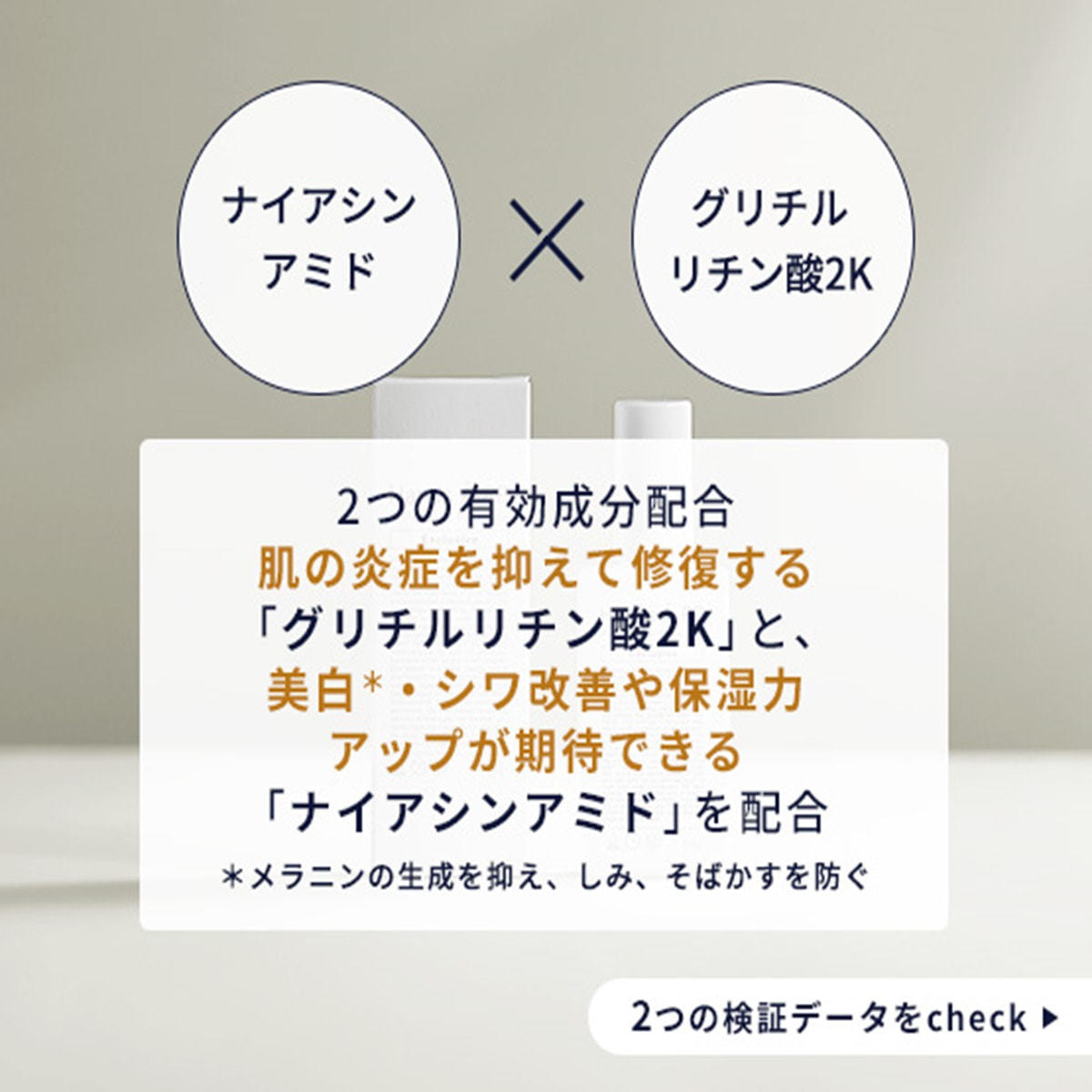 ナイアシンアミドで美白・シワ改善成分、ターンオーバー促進が期待できます。