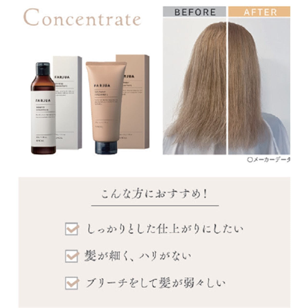 質感調整成分のコンセントレートオイルが髪表面をコートし、よりしっかりとした髪に。<br />