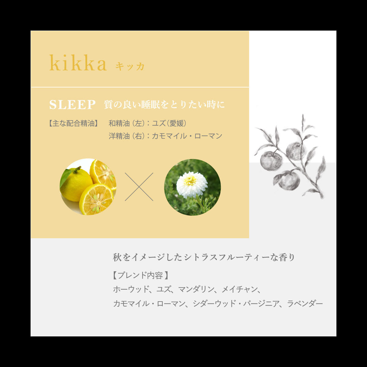 国産ユズとカモマイル・ローマンの天然精油入り。