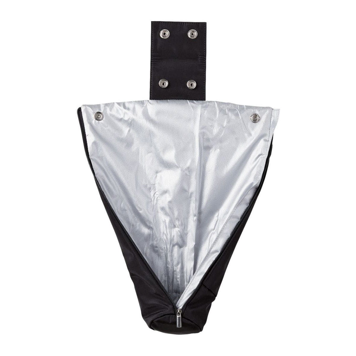 ■取り出し口のスナップボタンを留めるとヘアアイロンの飛び出しを防ぎます。旅行などの持ち運びの際も安心です。