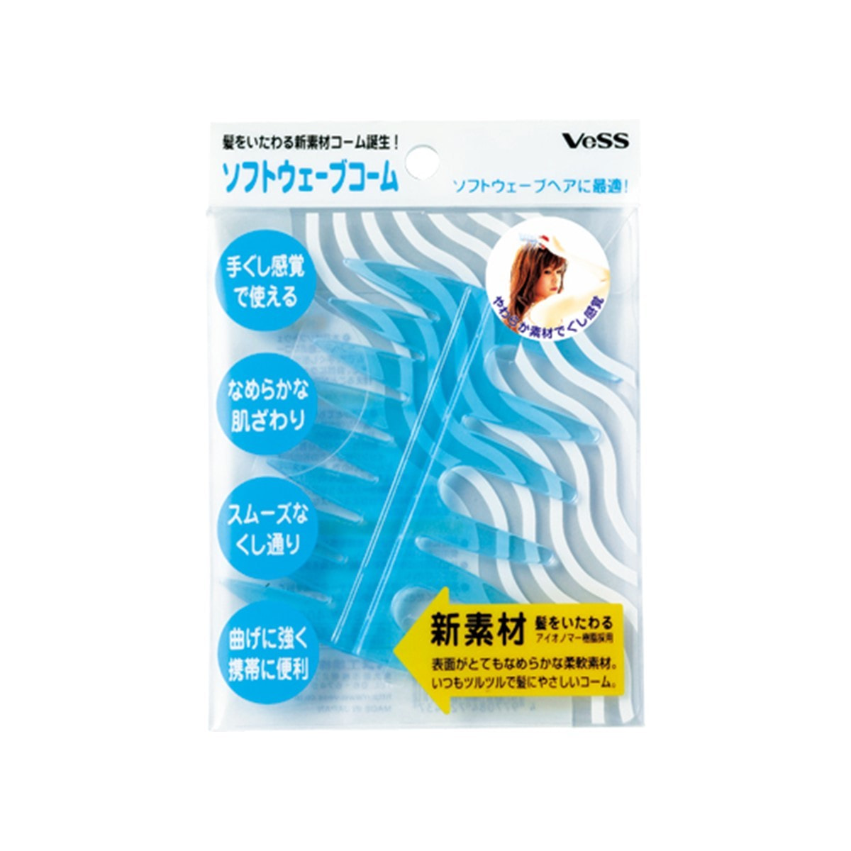 従来のコームのような硬さがなく、なめらかな肌触りとスムーズなクシ通りを実現した髪にやさしいヘアコームです。