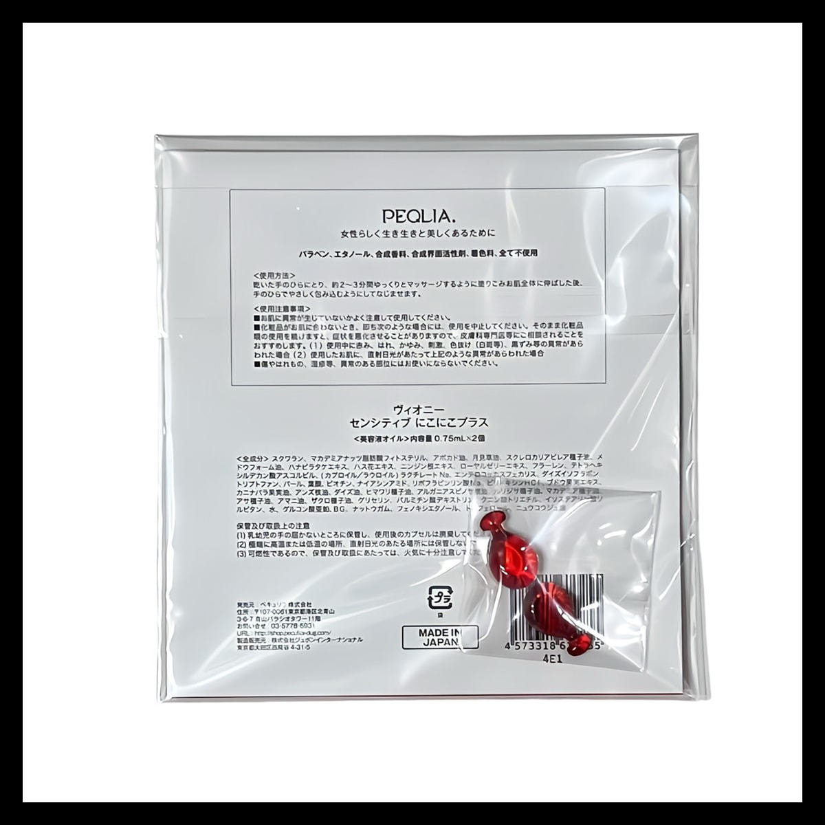 センシティブ にこプラスは、更年期や産前産後など女性のライフステージに応じて変化するデリケートな肌をケアするために開発されたカプセルオイルです。