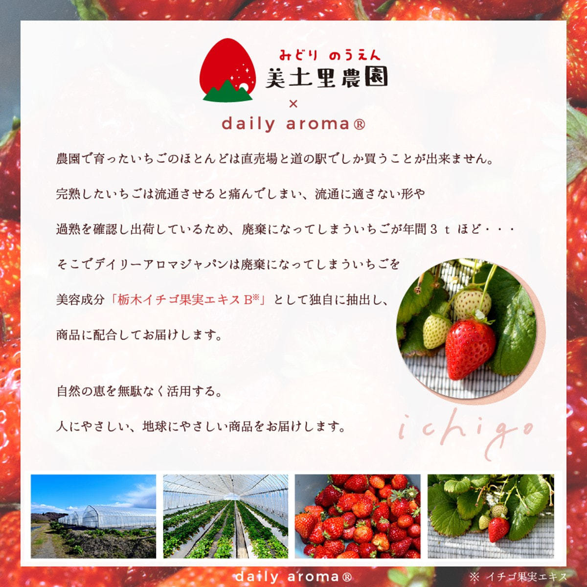 廃棄になってしまういちごから独自に美容成分「栃木イチゴ果実エキス*1」を抽出配合。