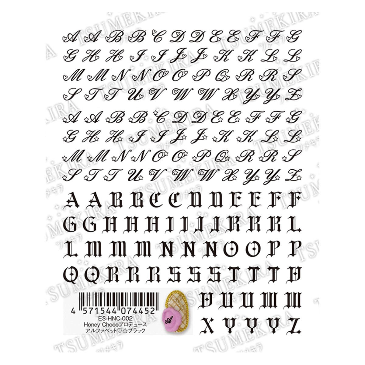 商品番号:0000000000043121 商品コード:207196 商品名:ツメキラ Honey Chocoプロデュース アルファベット ハートスター ブラック ES-HNC-002 お届け目安:2025-11-01
