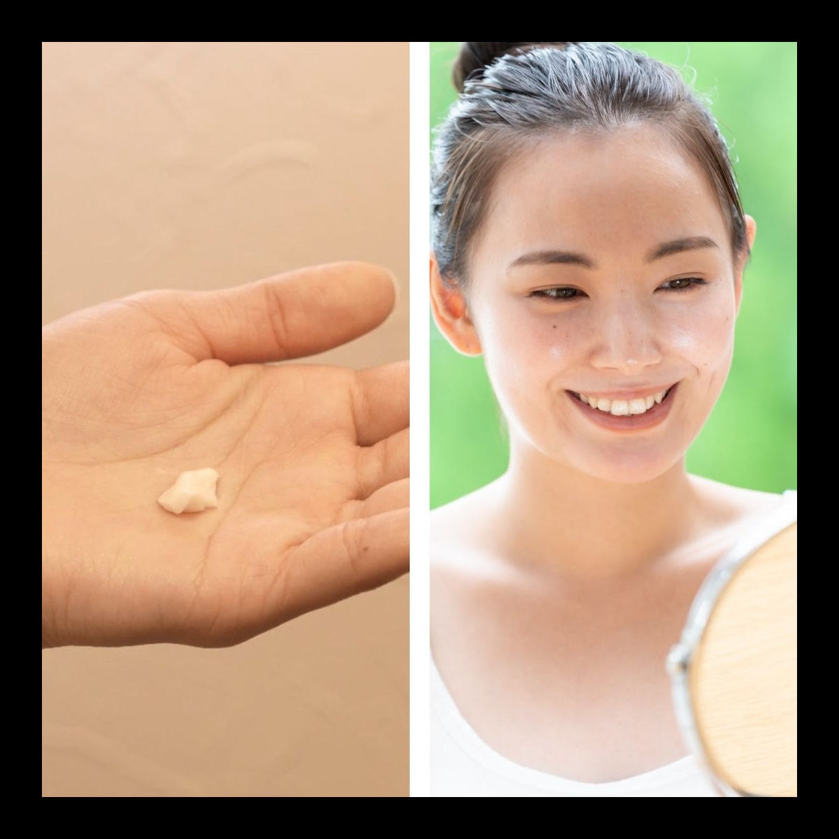スパチュラにてパール大手に取り、顔全体に塗布します。