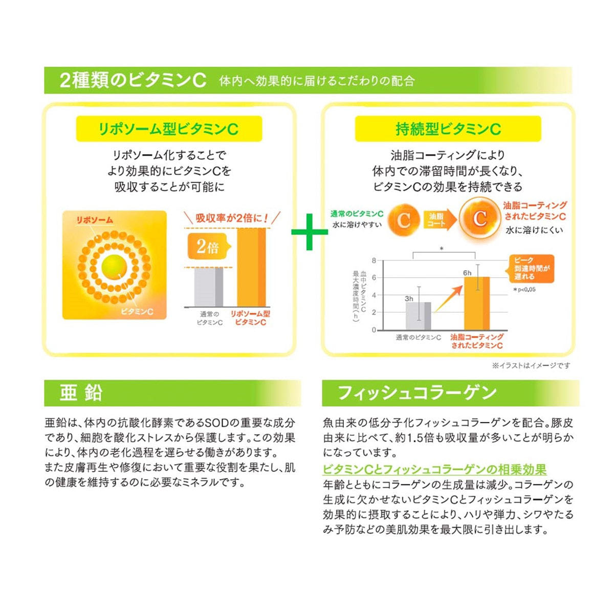 JC completeCには「リポソーム型ビタミンC」+「持続型ビタミンC」を1,000㎎配合。