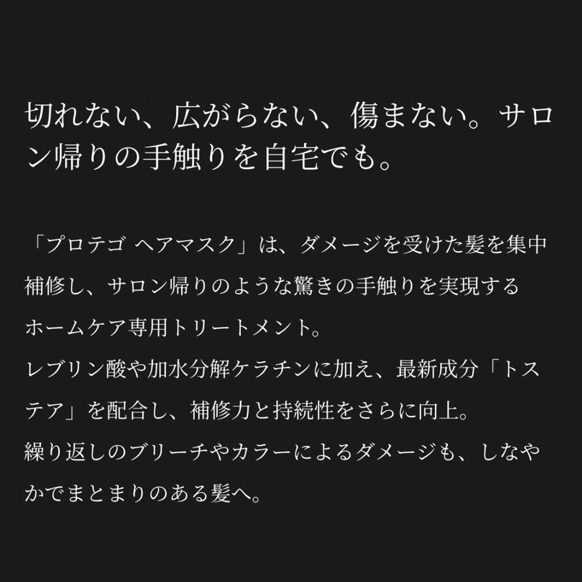 「プロテゴ ヘアマスク」は、ダメージを受けた髪を集中補修し、サロン帰りのような驚きの手触りを実現するホームケア専用トリートメント。