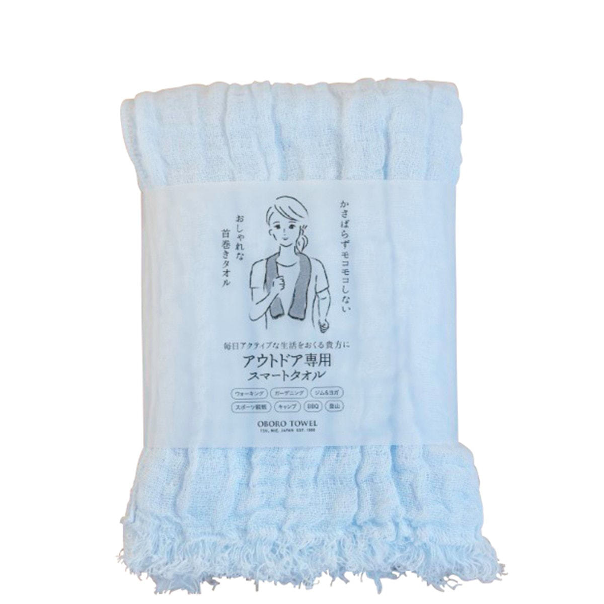 「スマートタオル」とはおぼろタオルの独自製法によりうまれた、かさばらずモコモコしない吸水・速乾に優れた、おしゃれな首巻きタオルです。