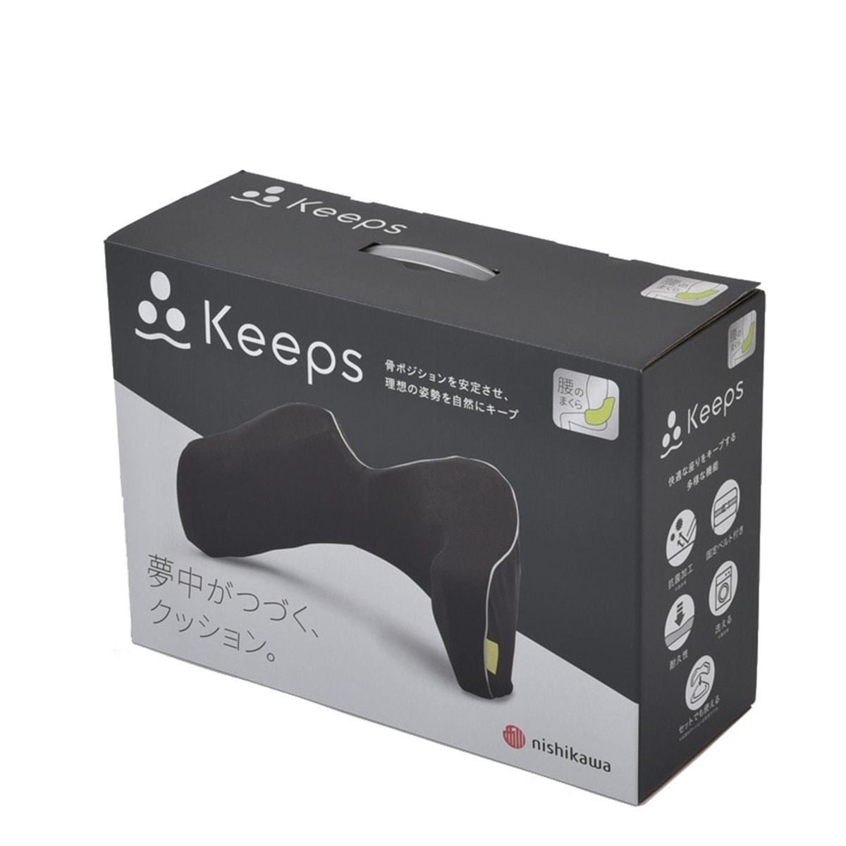 「Keepsランバークッション」は理想の座り姿勢をキープし、まくらのようにやさしく隙間を埋めます。