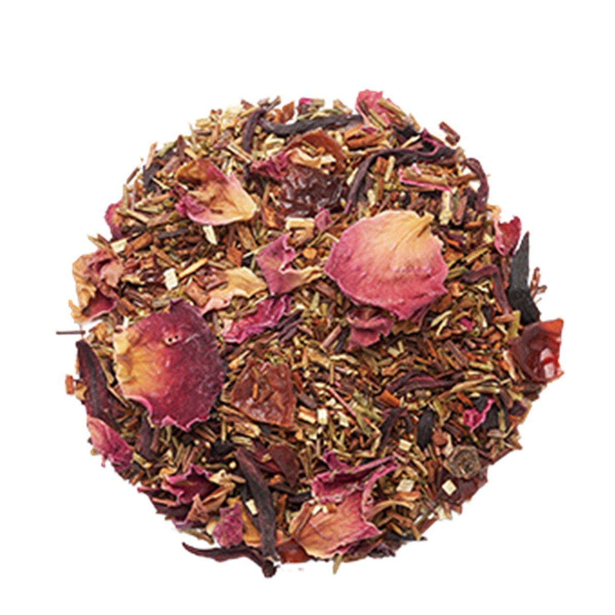 南アフリカの大地が育んだ上質なレッドルイボスをベースに、有機ハイビスカス、有機ローズヒップ、そして優雅なローズレッドを贅沢にブレンドしました。